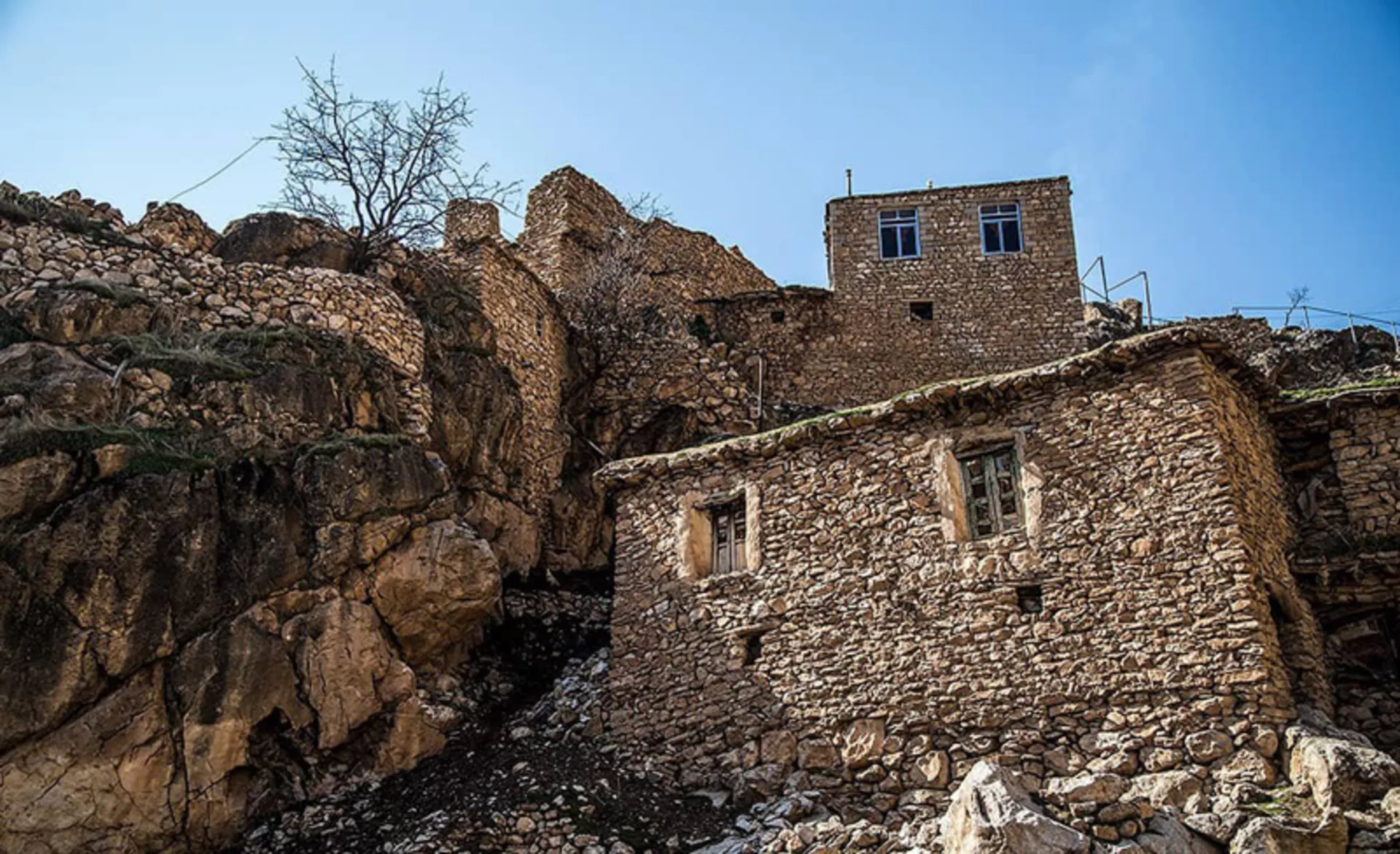 نکته شگفتانگیز دیگر، مصالح به کار رفته است. اکثر خانههای قدیمی و اصیل روستا تنها با استفاده از سنگ و بدون هیچگونه ملاتی (مانند سیمان یا گچ) ساخته شدهاند. استادکاران محلی با مهارتی عجیب، سنگها را چنان در هم چفت و بست کردهاند که قرنها در برابر باد، باران و برفهای سنگین کردستان دوام آوردهاند.