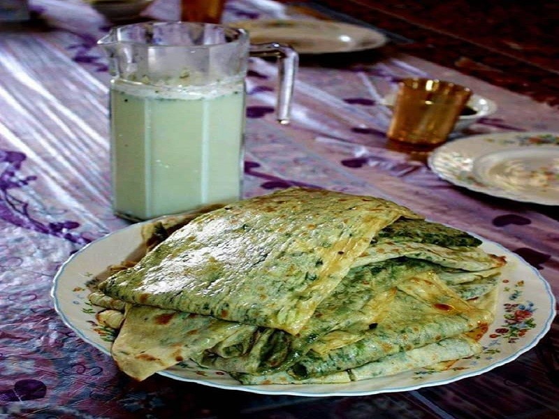 کلانه یک میانوعدهی کامل و بسیار محبوب است. نان نازکی که درون آن را با سبزیجات کوهستانی (مانند پیچک در بهار یا پیازچه) پر میکنند و روی «ساج» میپزند. سپس آن را با کرهی محلی یا روغن حیوانی چرب میکنند و همراه با دوغ محلی سرو میکنند.